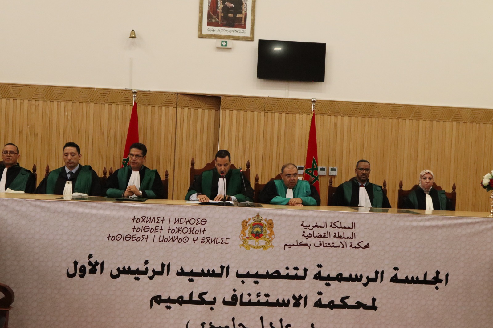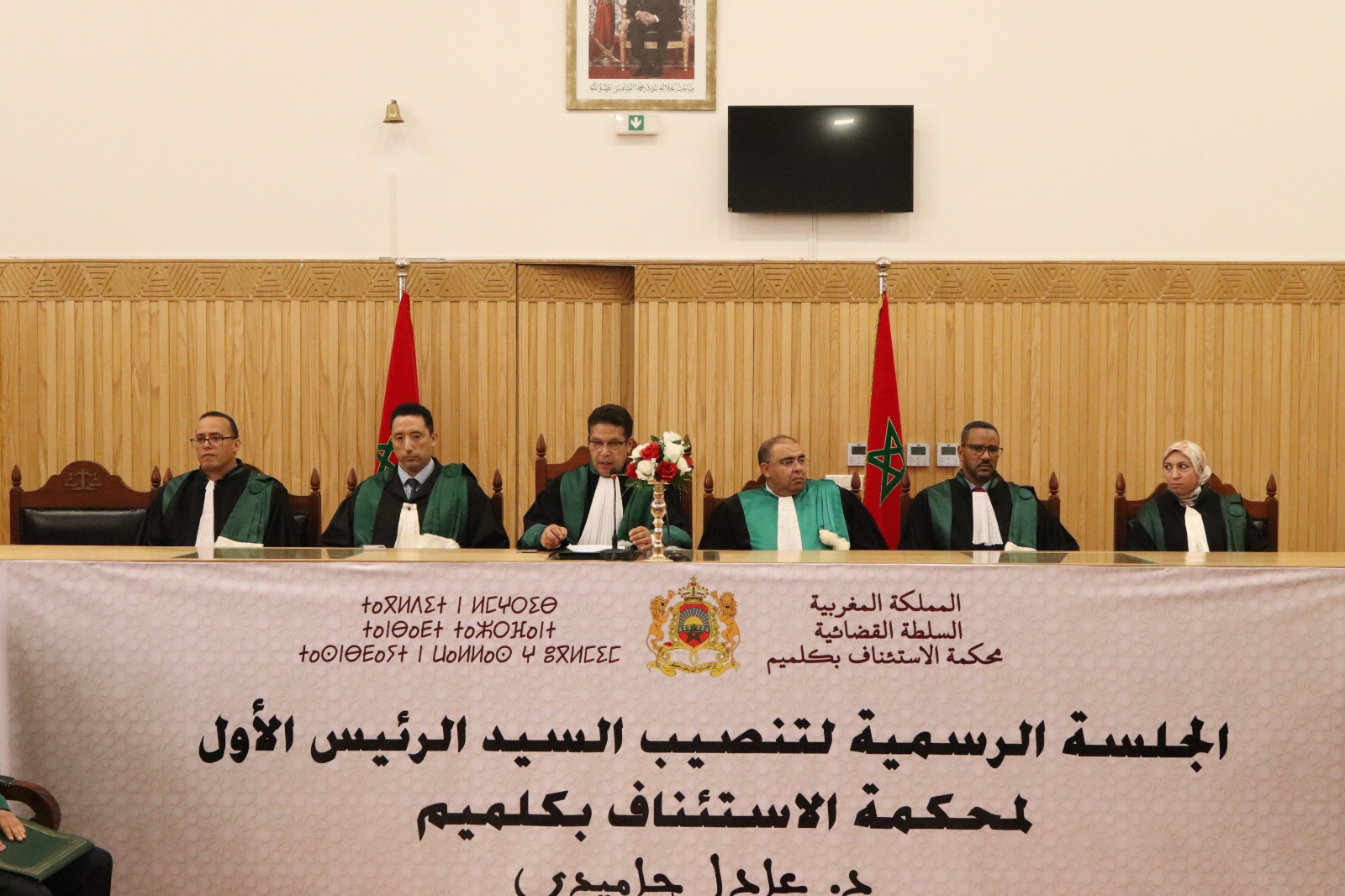 شهدت إحدى قاعات الجلسات بمحكمة الاستئناف بكلميم صباح اليوم الخميس تنصيب السيد عادل حاميدي رئيسا أولا لمحكمة الاستئناف بكلميم حضره والي جهة كلميم وادنون، عامل إقليم كلميم، محمد الناجم أبهاي، و عامل إقليم سيدي إفني محمد ضرهم و عبد الله الماعوني والزبير بوطالع عضوي المجلس الأعلى للسلطة القضائية ممثلين للرئيس المنتدب للمجلس الأعلى للسلطة القضائية و نور الدين الكرناوي ممثل عن رئاسة النيابة العامة و مولاي سعيد الشرفي مدير التجهيز بوزارة العدل ممثلا لوزير العدل والوكيل العام للملك سعيد موفنين بالإضافة إلى عدد من المنتخبين والمسؤولين المدنيين والعسكريين المحليي ورؤساء مصالح خارجية.